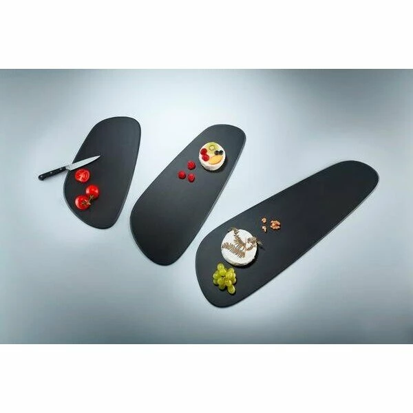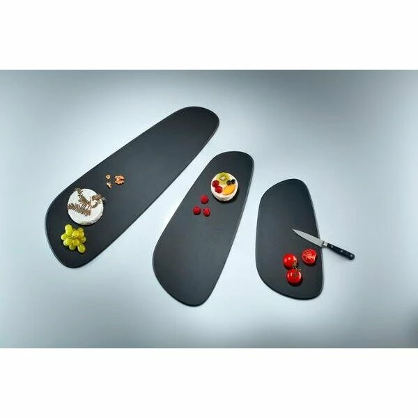 Dieses formschöne Schneidebrett Duracore von Continenta erinnert mit seiner Formgebung an einen Kieselstein und wirkt modern und ästhetisch. Gefertigt aus einer stabilen Holz-Papier-Faser, ist das Schneidebrett außerdem hochfunktional und jederzeit einsatzbereit.